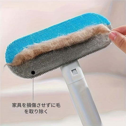 【2in1】魔法のペット抜け毛取りブラシ|伸縮ロングハンドルでソファから網戸まで一気に掃除