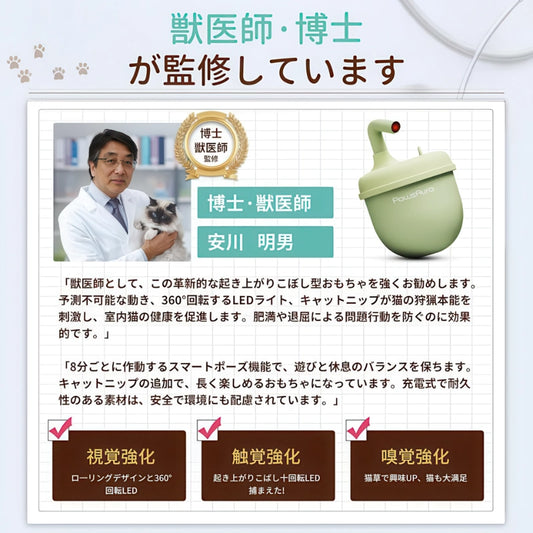 獣医師監修 猫 おもちゃ 自動 3in1 - 360°回転LEDライト&キャットニップで運動不足解消