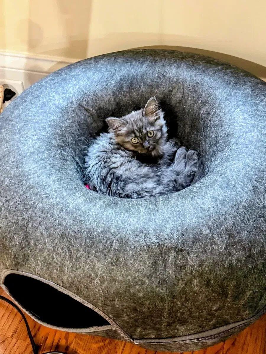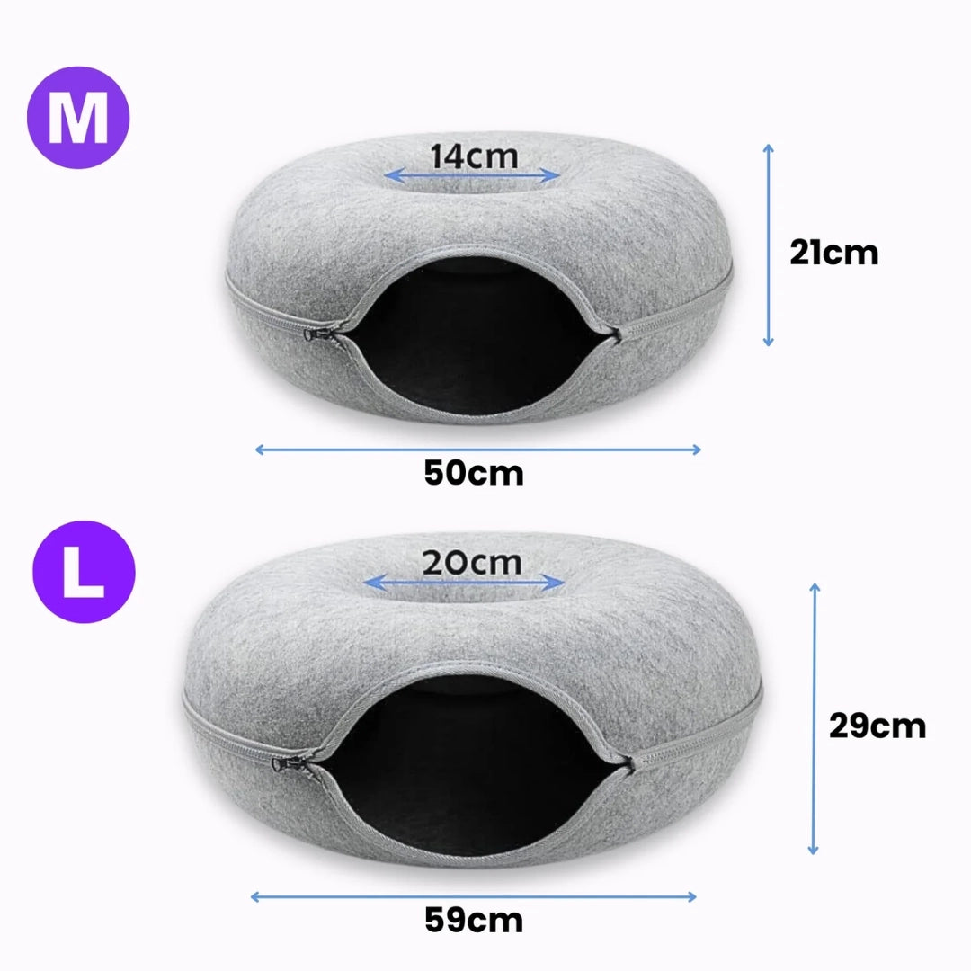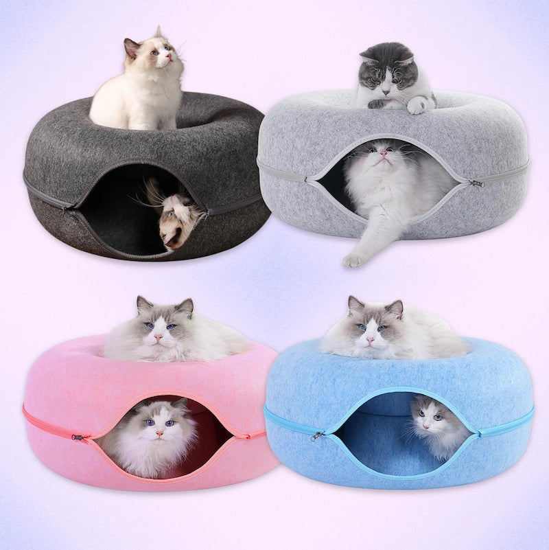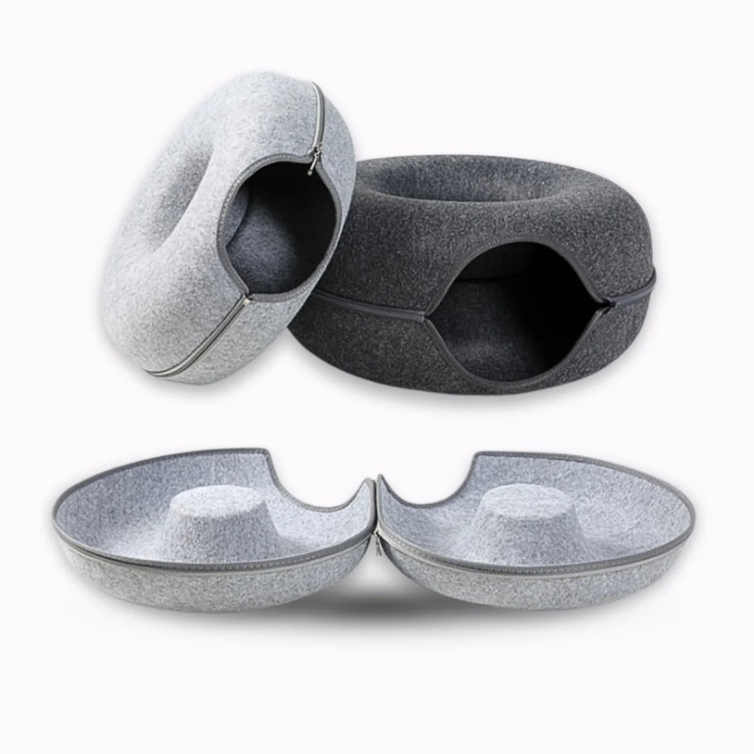 すぐに毛だらけになったり、へたってしまったりする猫用ベッドや隠れ家にうんざりしていませんか?もふもふ幸せ®の「ドーナツ型2WAYトンネルベッド」は、快適な寝心地と賢いデザインを両立。広々とした入口、爪とぎに強い素材、そしてお手入れ簡単なベッド表面が特長です。ただの寝床ではありません。遊びと隠れ家が一つになった、猫ちゃんの新しいお気に入りの空間です。