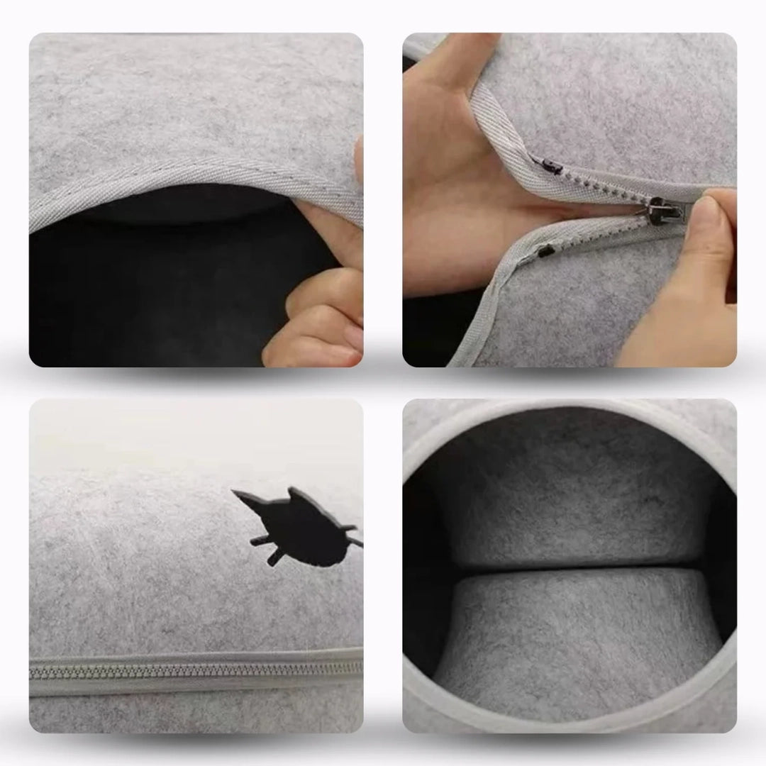 ご安心ください。高品質で爪とぎに強いフェルト素材を使用し、丈夫な金属製ファスナーでしっかりと固定されているため、元気いっぱいの猫ちゃんが使っても型崩れしにくい構造です。毎日の使用にも耐えるよう、丈夫に作られています。