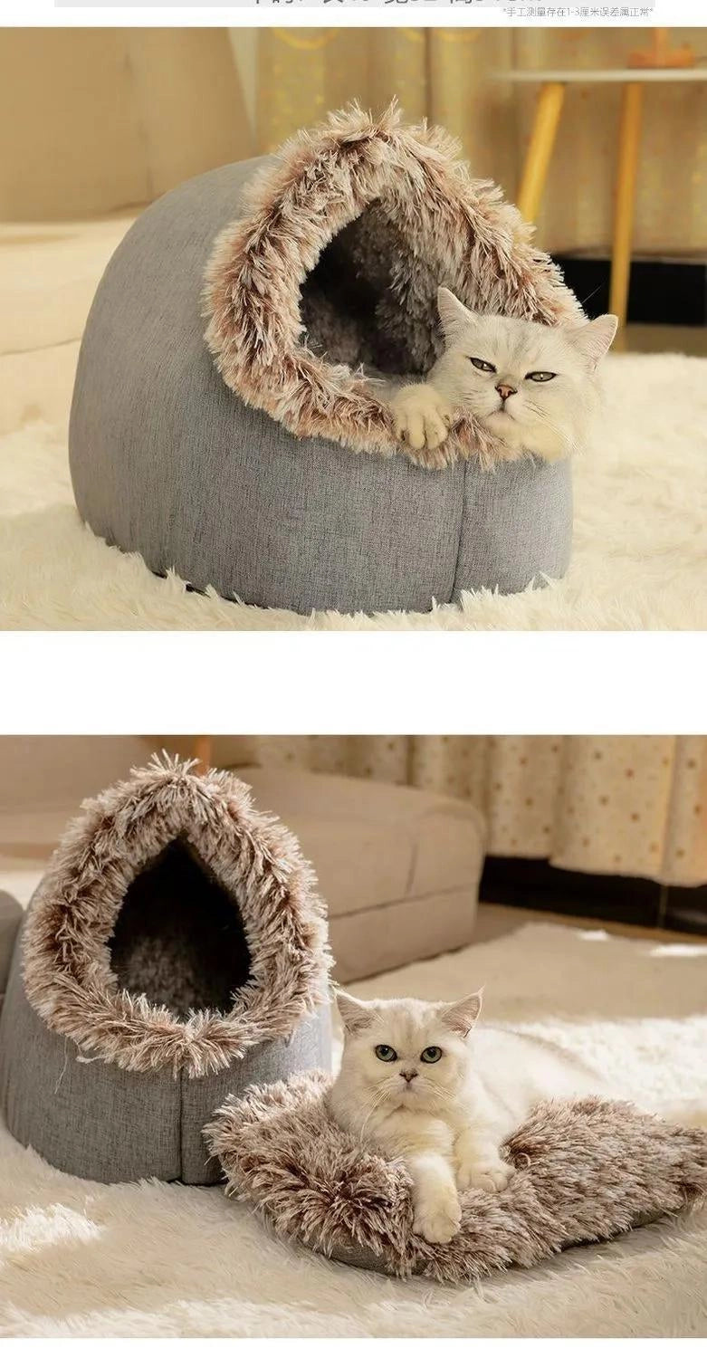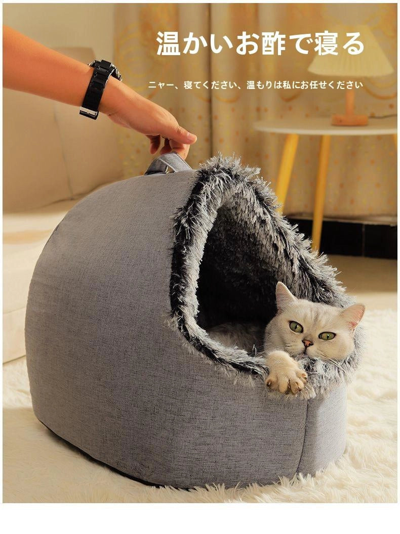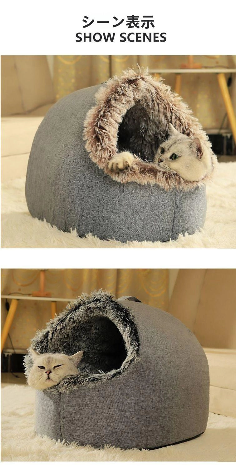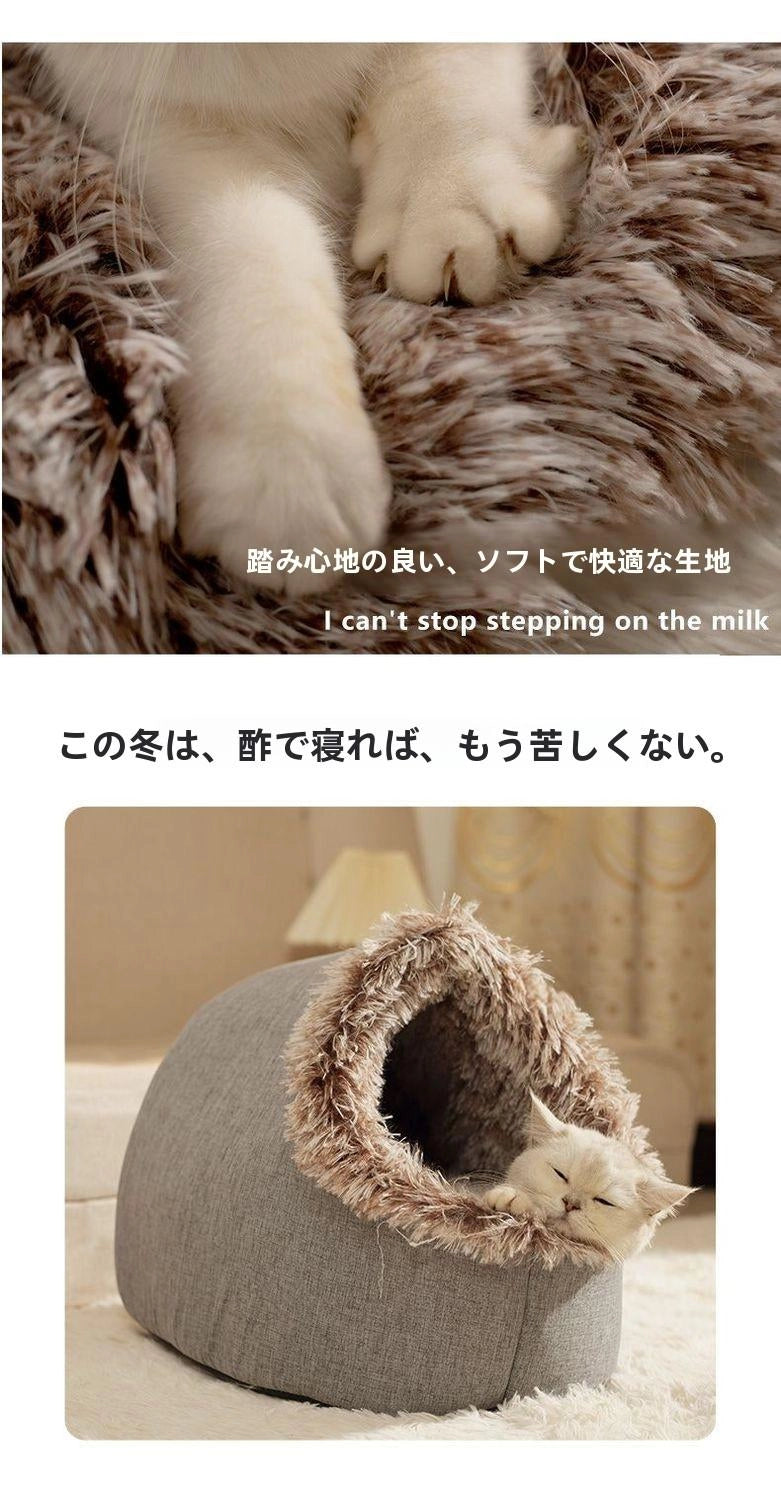 もこもこ囲み猫ベッド 冬の冷え対策に 付属ブランケットでぽかぽか 犬猫OK
